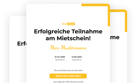 Nach Bestehen kannst du dein offizielles PDF-Zertifikat sofort herunterladen. Nutze es direkt für deine Wohnungsbewerbung und steigere deine Chancen.